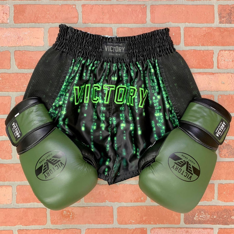 VICTORY MUAY THAI SHORTS ENCRYPTED BLACK/GREEN